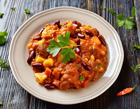 - Stir in the black beans, kidney beans, pinto beans, diced tomatoes, tomato sauce, vegetable broth, and tomato paste.